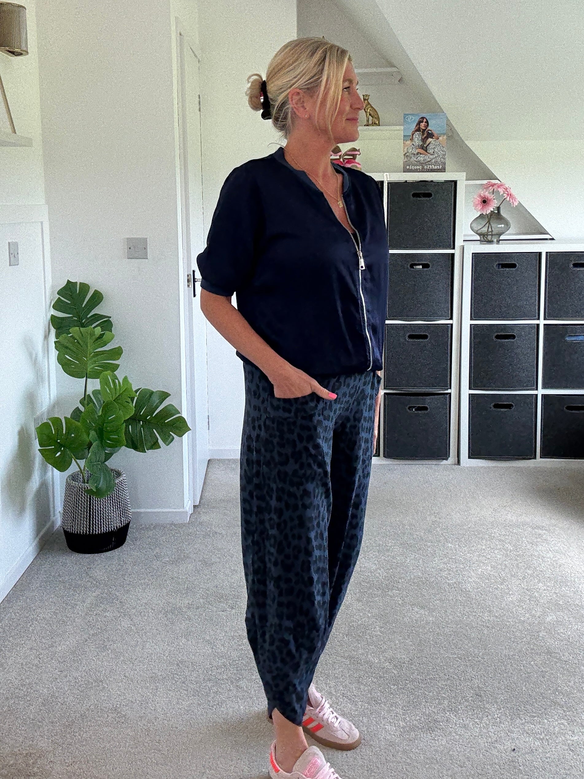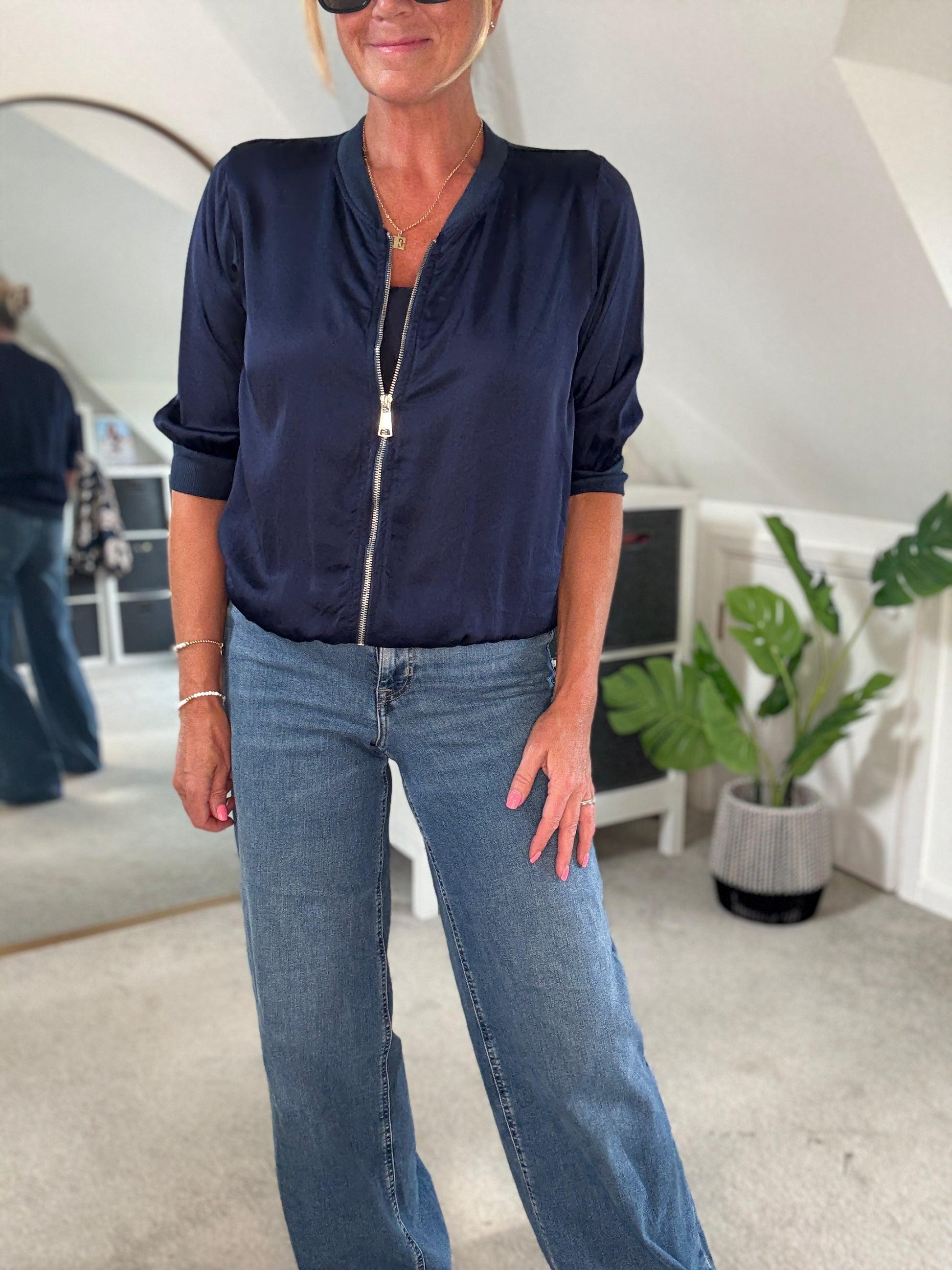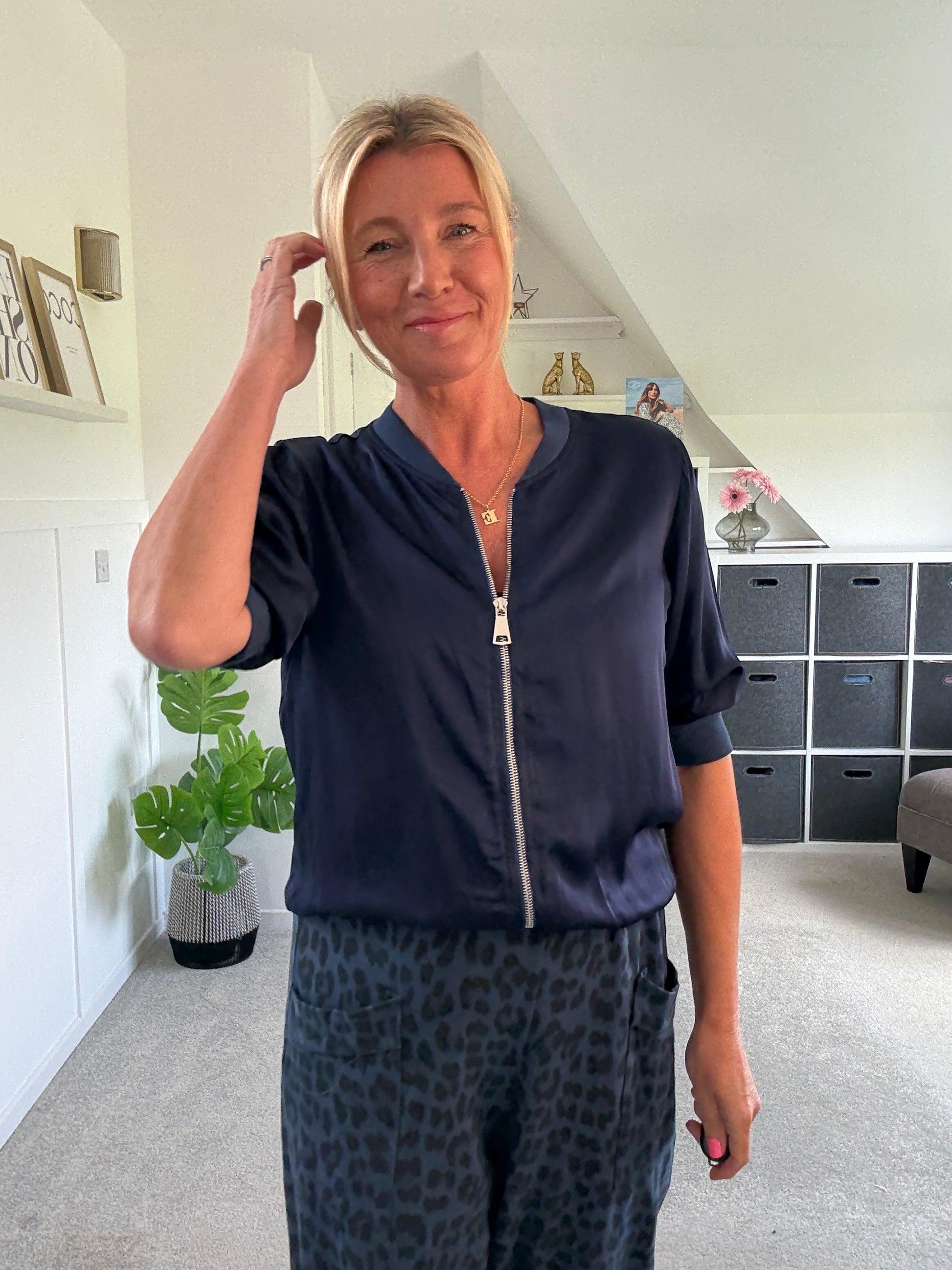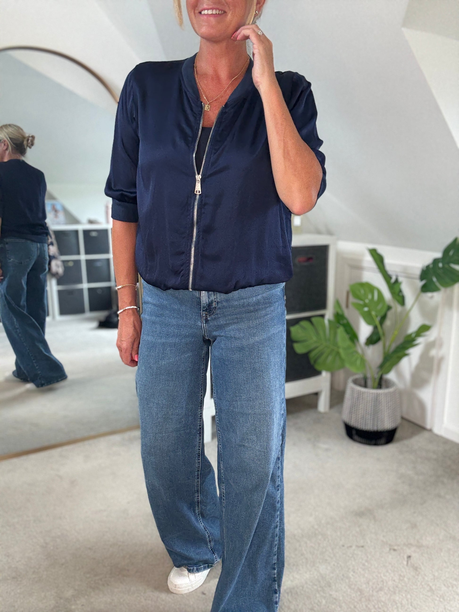 Navy Silk Mix 1/2 Sleeve Bomber Jacket