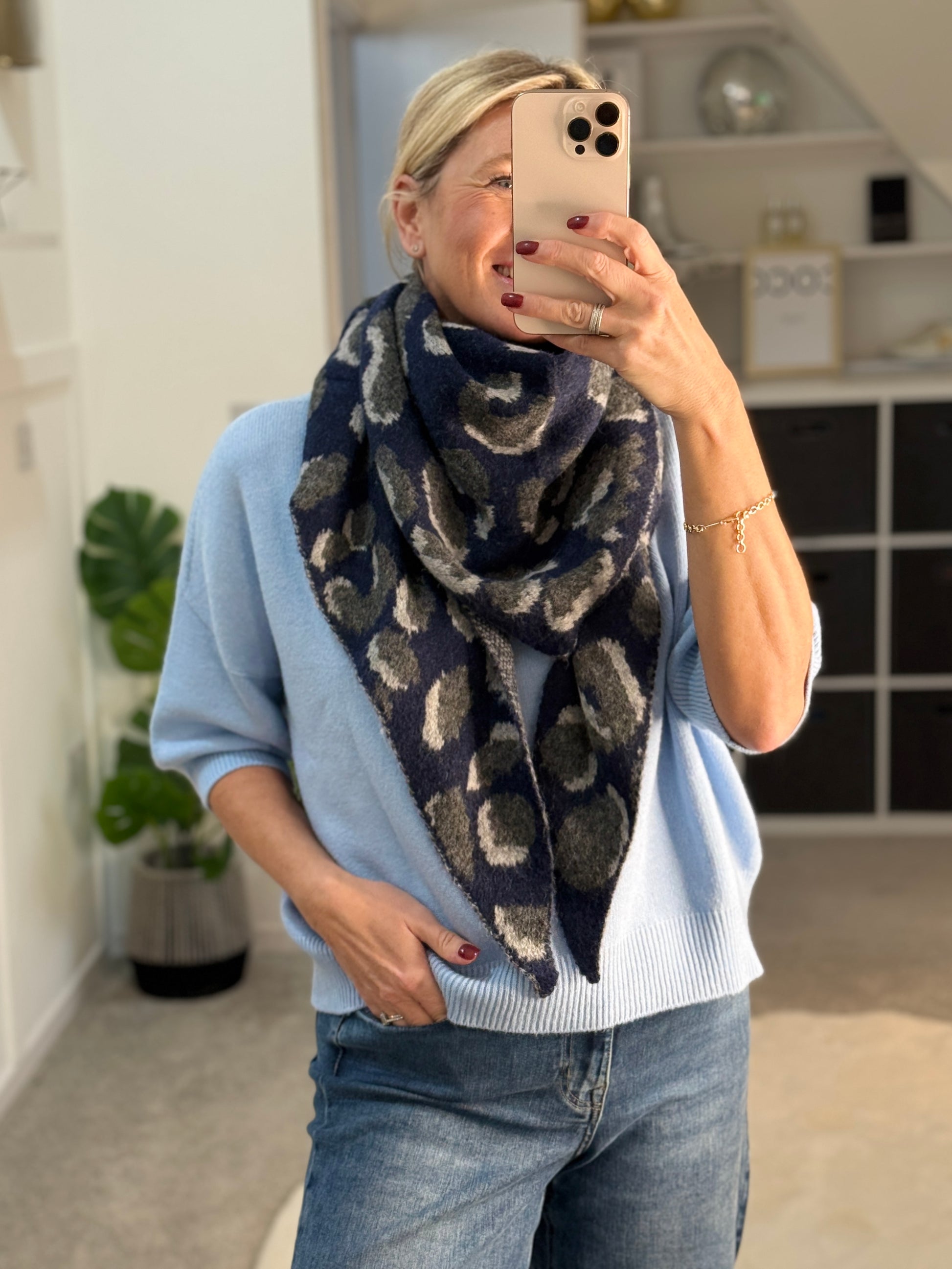 Navy Triangle Leopard Print Scarf