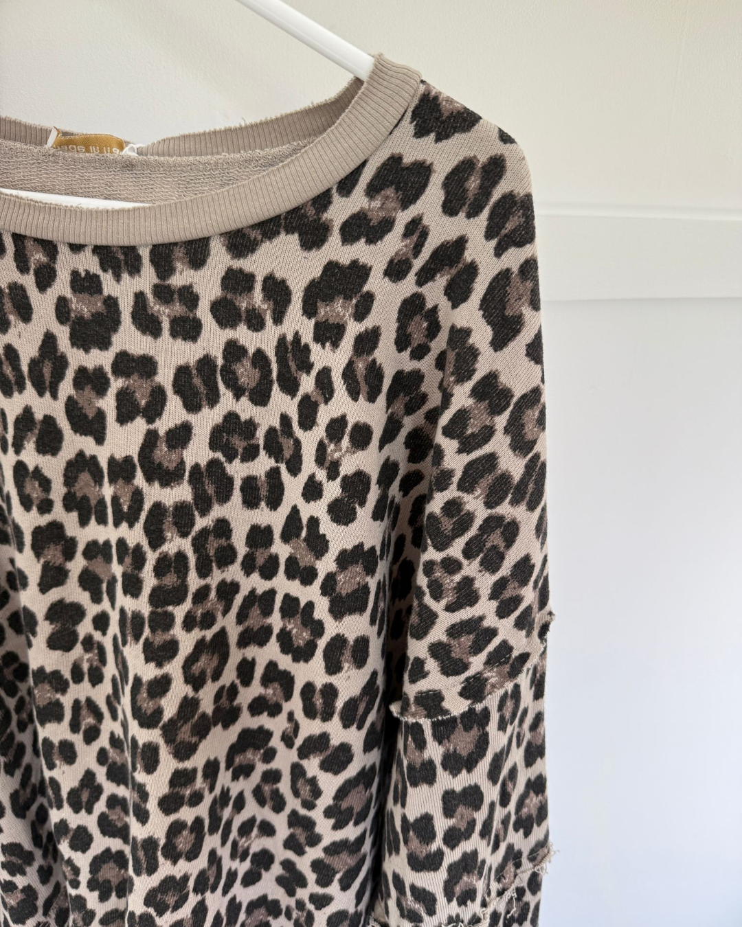 Make a bold statement in these gorgeous leopard oversized print sweatshirts. Designed with an oversized fit and raw hem detailing, it’s the perfect blend of comfort and standout style.