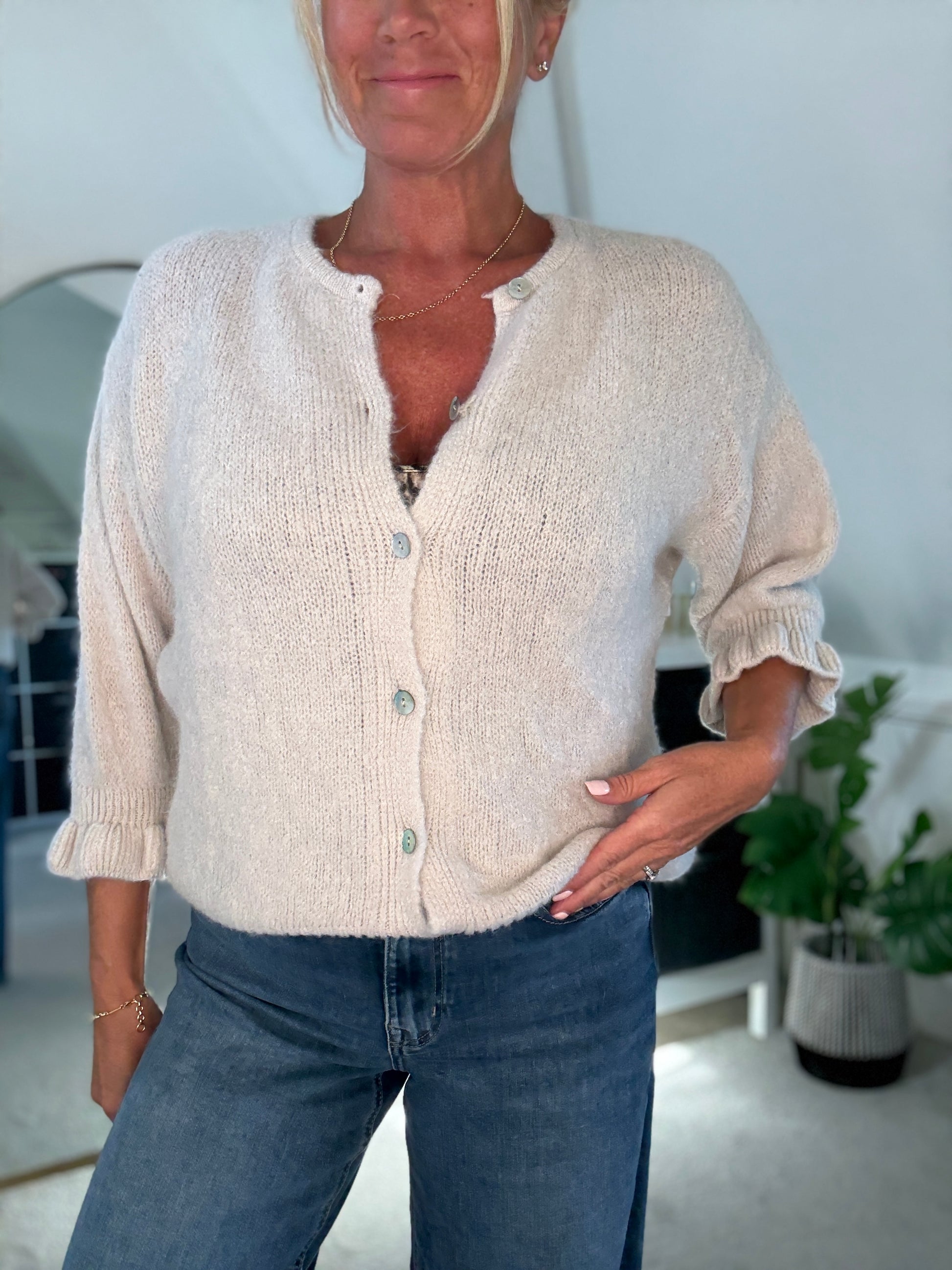 Oatmeal Alpaca Mix Frill Sleeve Cardigan
