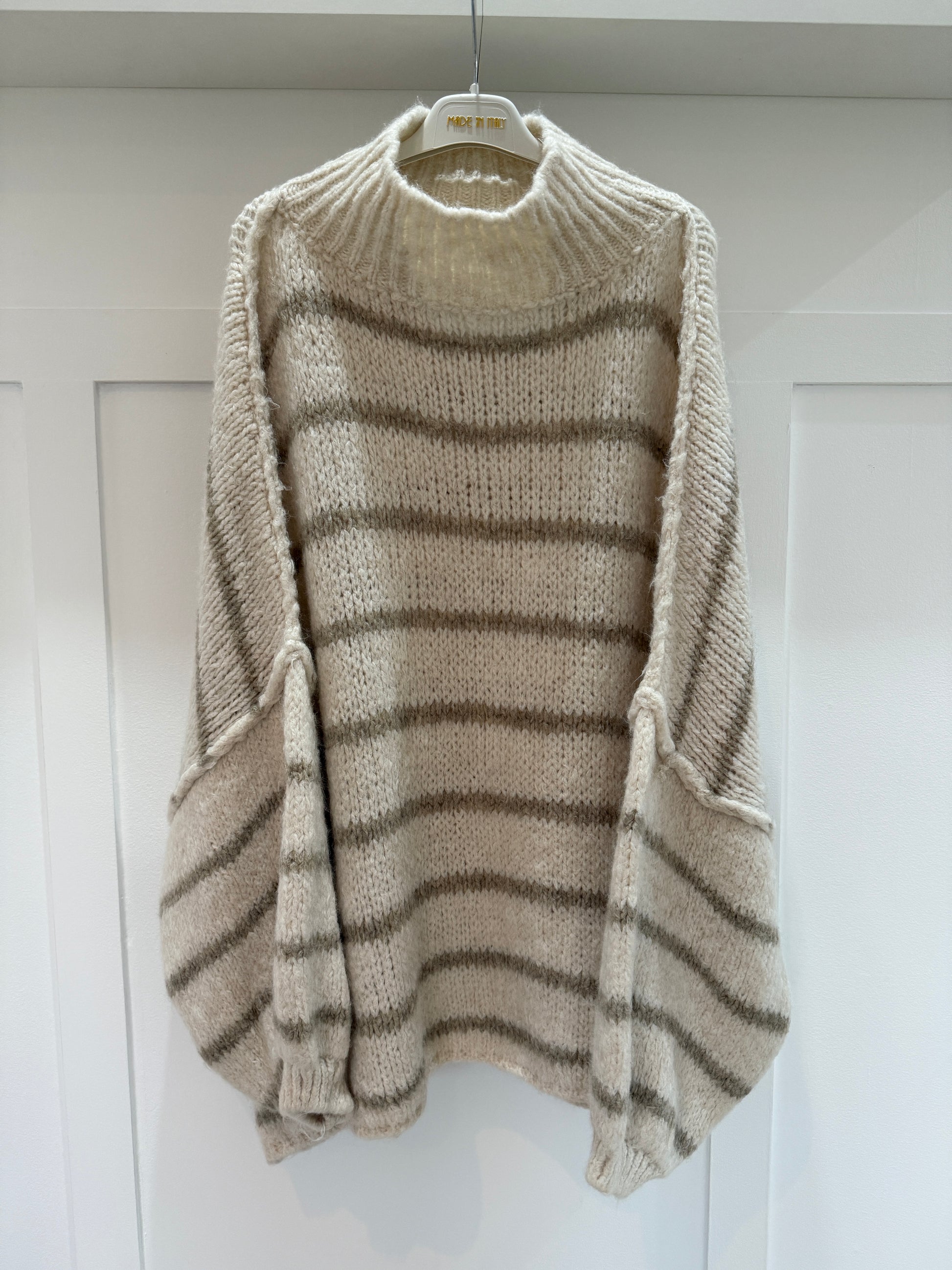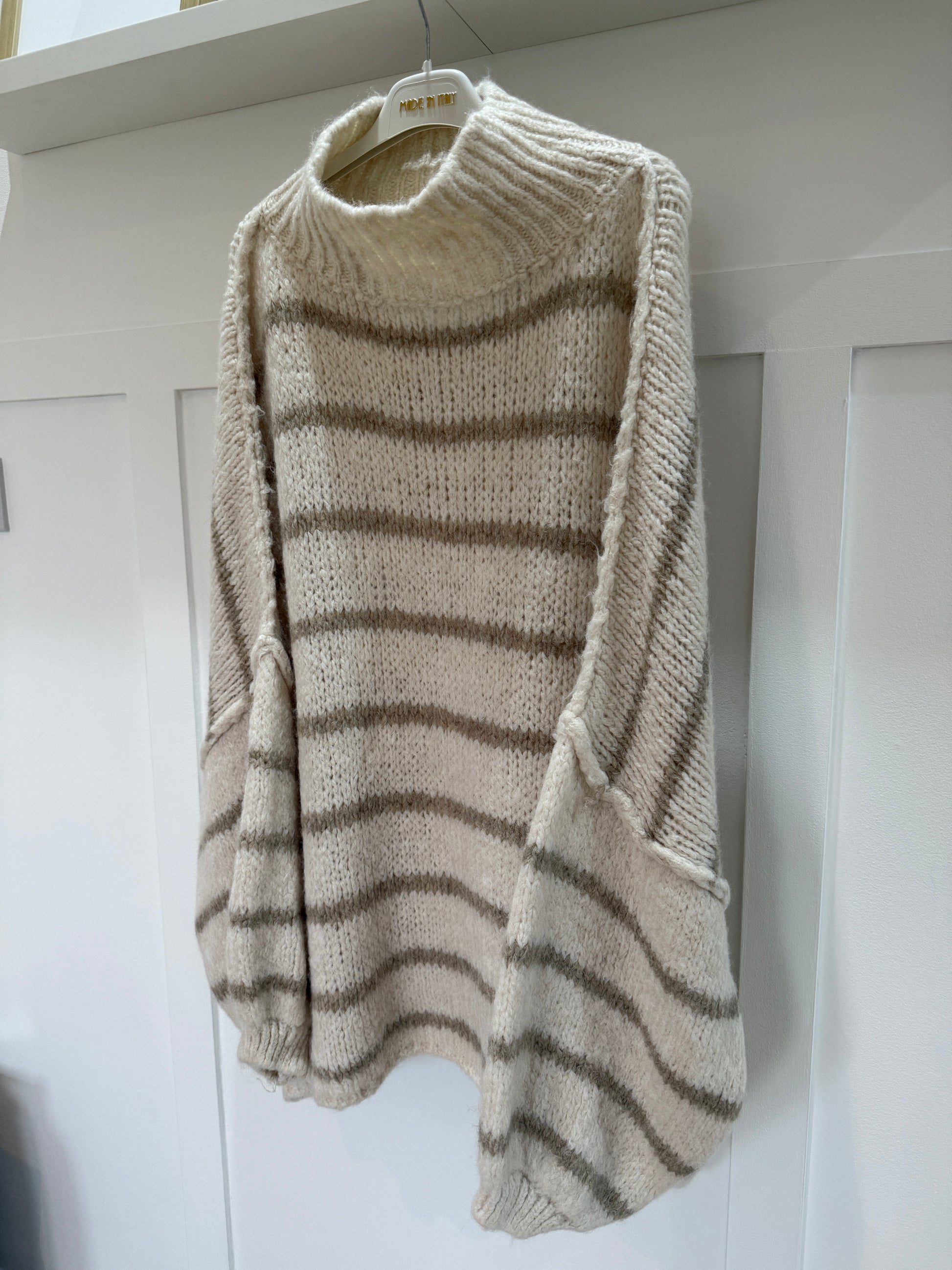 This striped oversized, high-neck jumper is the definition of cosy-chic. With a relaxed drop shoulder and slouchy fit, it’s perfect for easy weekends , just pair over leggings for that effortless off-duty vibe.