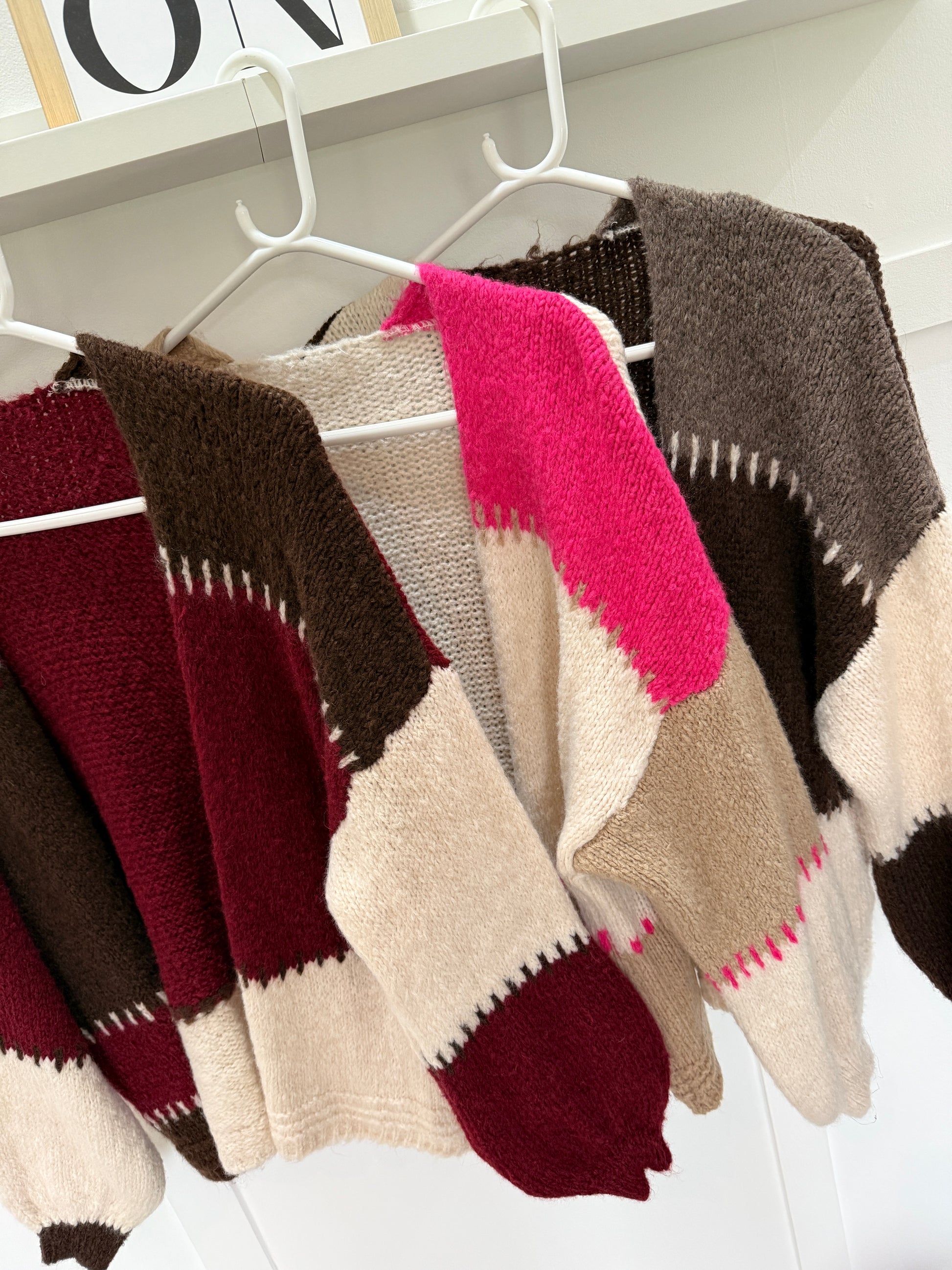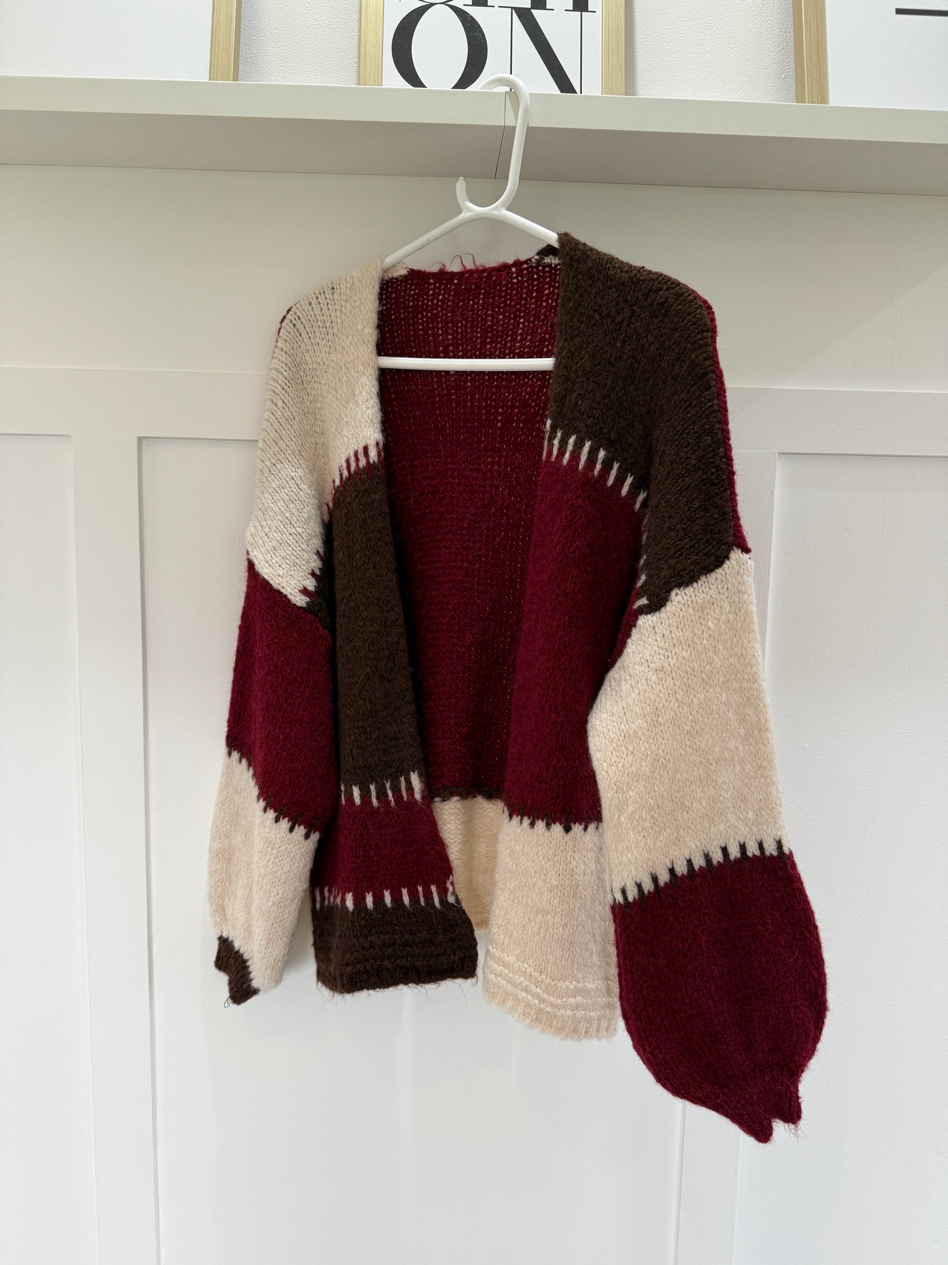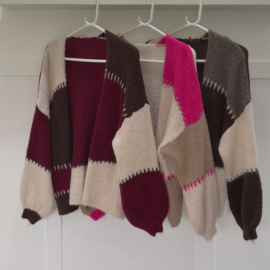 Effortless and versatile, this patchwork cardigan is the ultimate throw-on layer your wardrobe will thank you for. Designed with bold overstitch contrast detailing, it brings a modern twist to a classic knit. The oversized fit makes it perfect for layering over tees, shirts, or dresses, while the super-soft (non-itchy) yarn ensures all-day comfort.