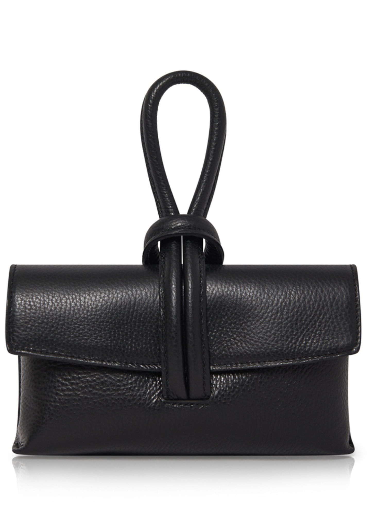 Gorgeous REAL ITALIAN LEATHER loop detail Clutch Bag. There is also a detachable and adjustable long strap so you can also wear it as a Cross Body Bag! It has 1 compartment inside and 1 internal pocket with zipper.