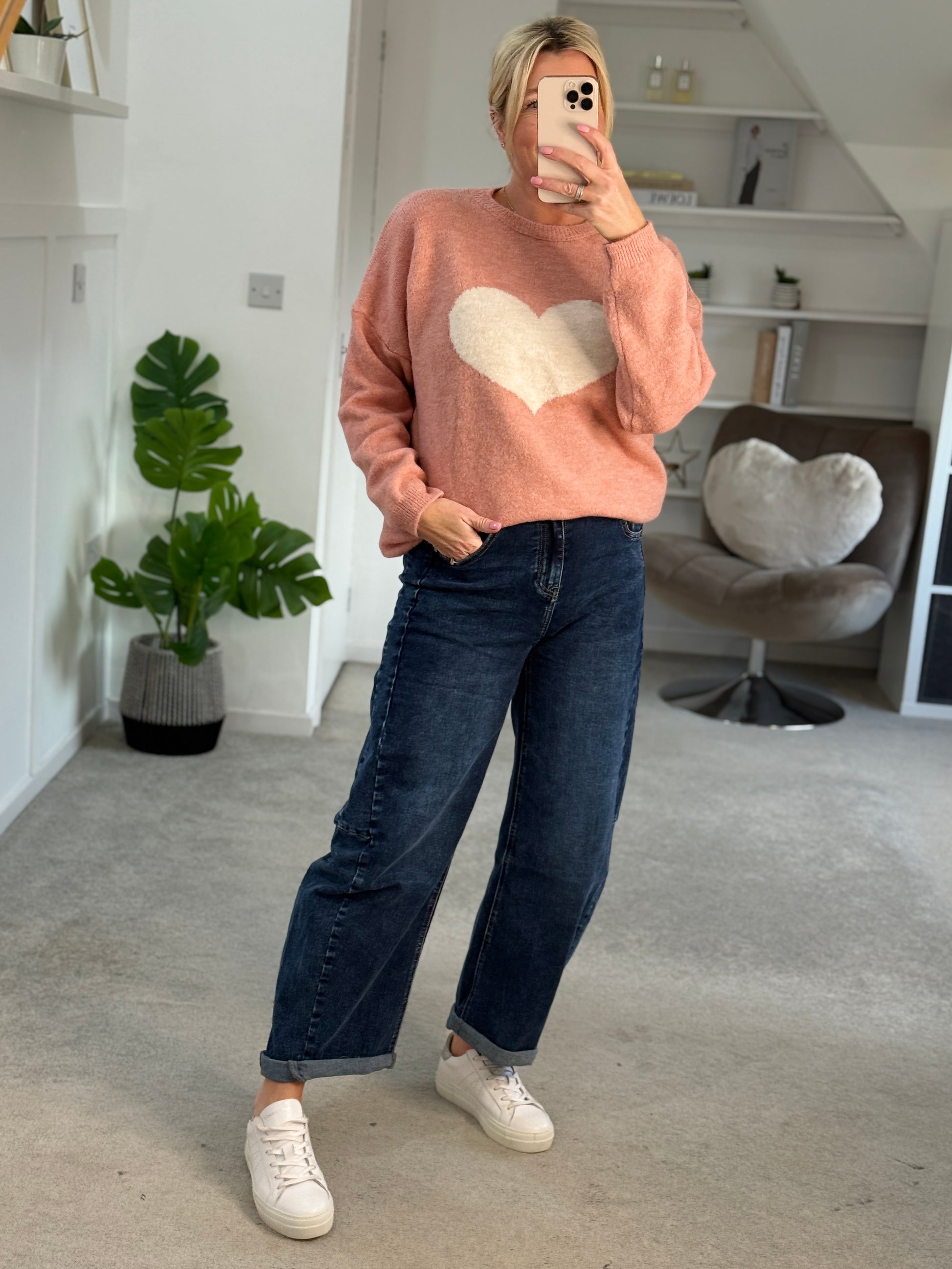 Wrap up in effortless style with this gorgeous crew-neck knit, designed with a nice one size fit (not too oversized or fitted) and a statement heart motif for a cool, laid-back feel. Perfect for everyday wear, it’s easy to layer and instantly elevates your casual looks.