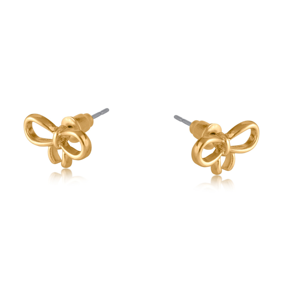 These handcrafted, gold or silver-plated small bow design earrings offer a playful and very trendy touch to your look. At least 50% of the brass used in the jewellery we make is recycled from leftover/overhead brass. All posts are hypoallergenic made from surgical steel.