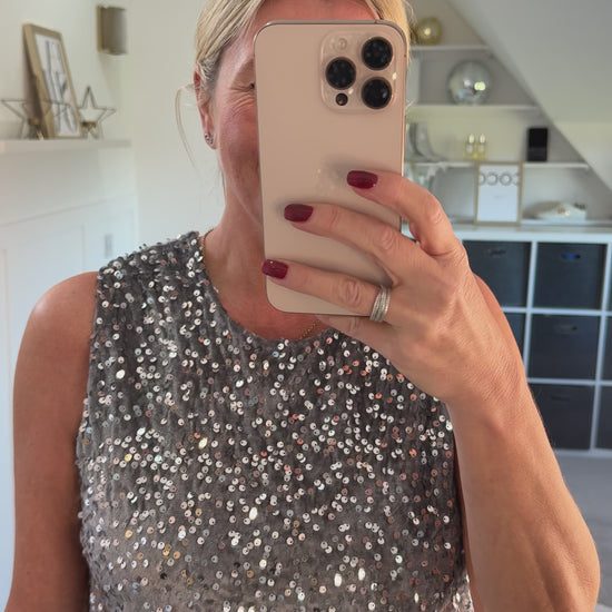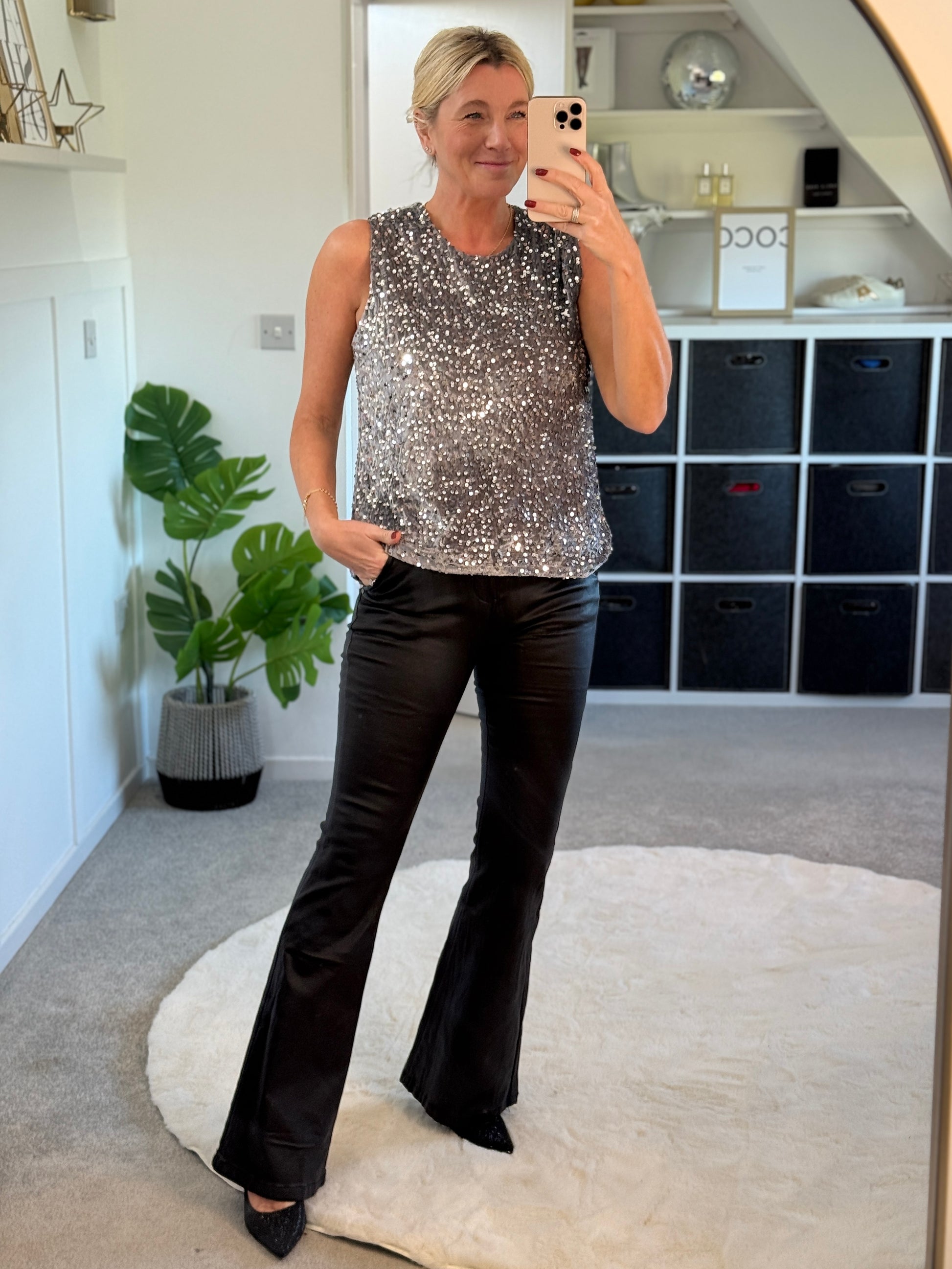 Beautiful sparkly sequin/velvet sleeveless top. Fully lined with a soft jersey material and a nice one size fit, not too fitted. Team with with skinnies, heels and a blazer for an evening out or dress down with jeans.