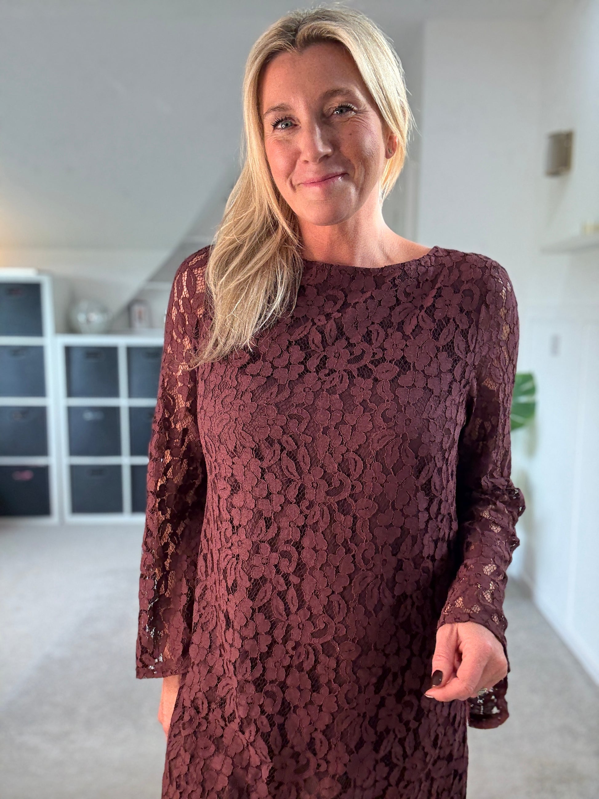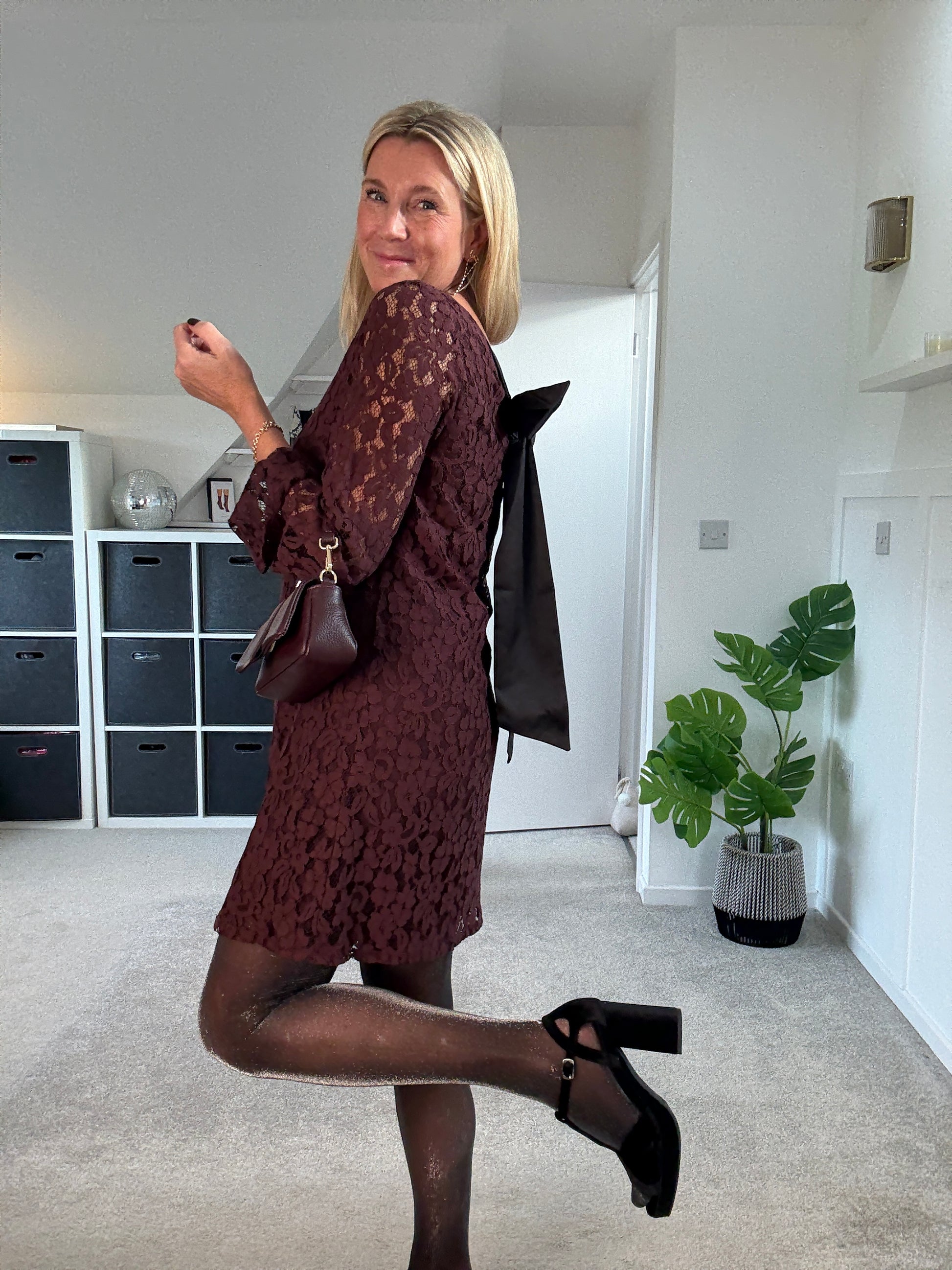 Every celebration deserves a show-stopping look, and this stunning fudge brown lace dress from Vero Moda delivers.