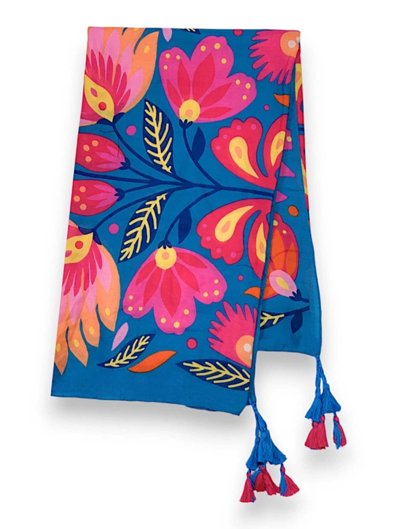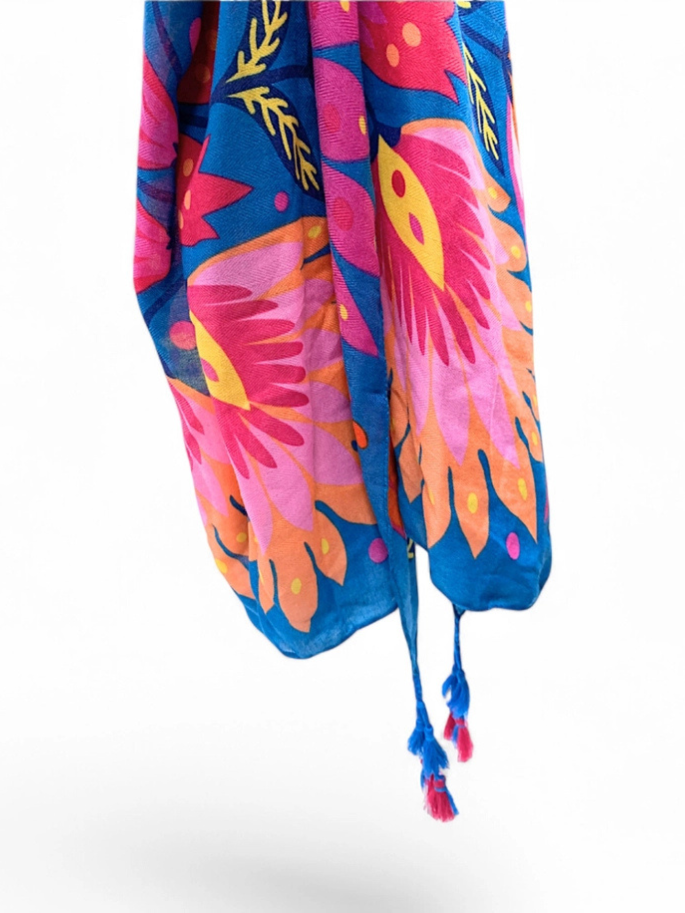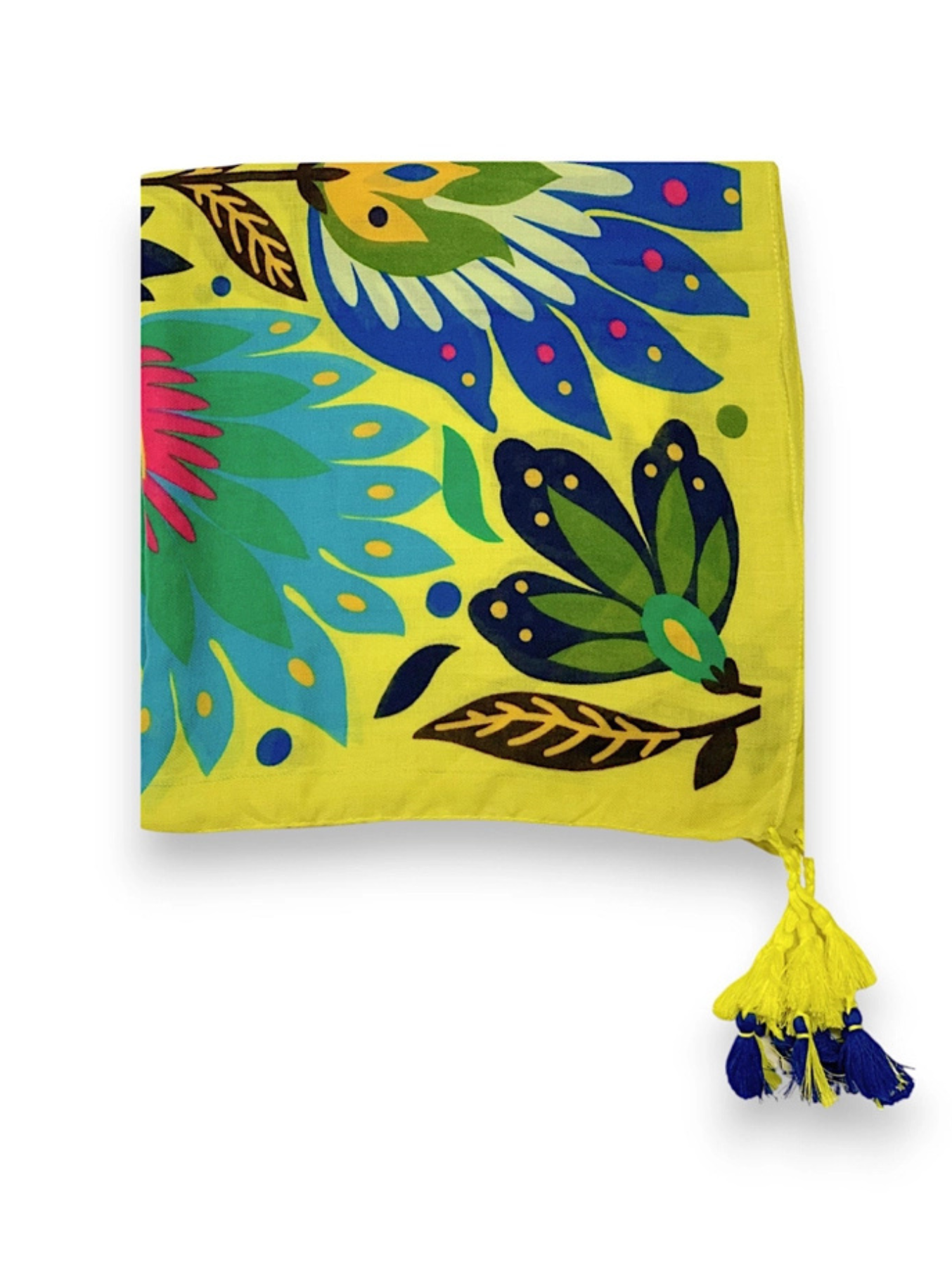Beautiful square scarf with floral lotus leaf print giving off that perfect spring colourful vibe.